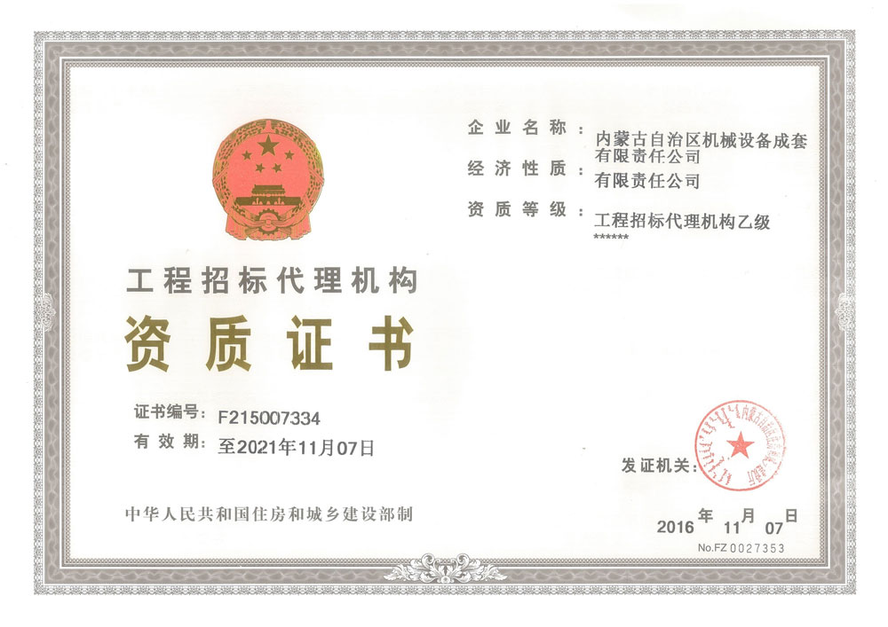 內蒙古自治區機械設備成套有限責任公司營業執照